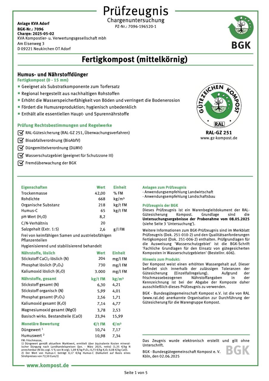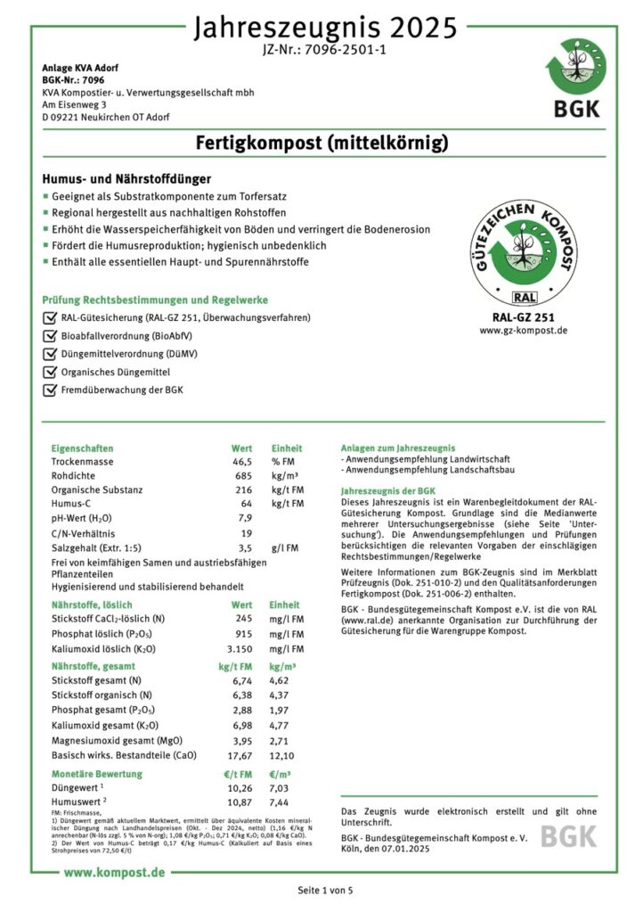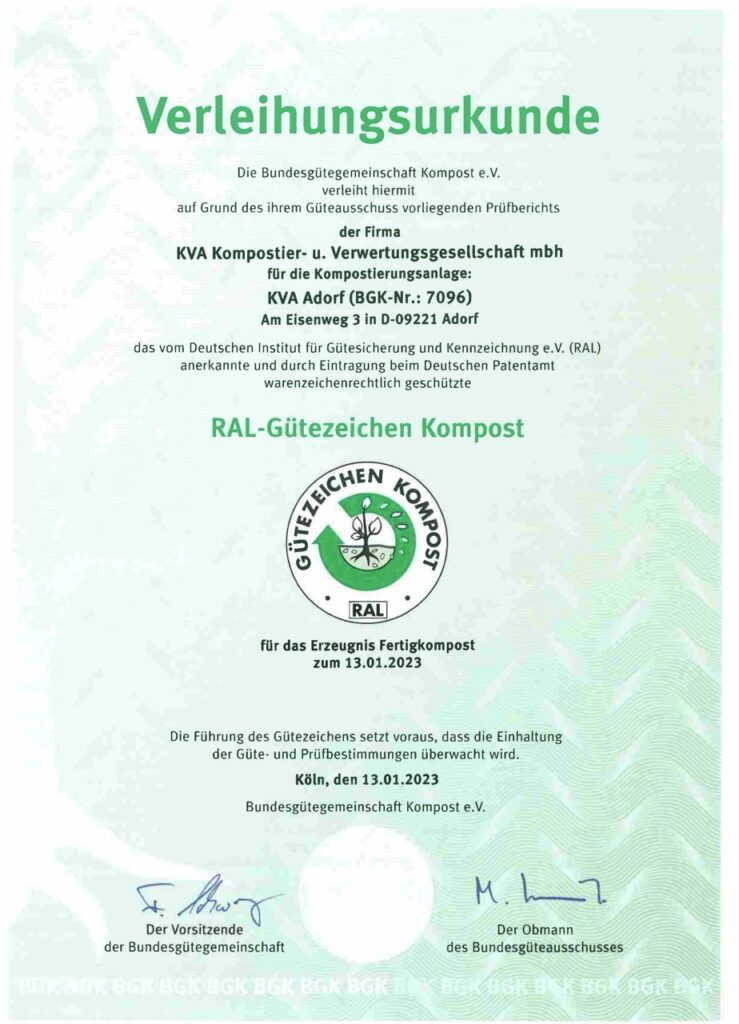 Verleihungsurkunde RAL-Gütezeichen Kompost